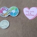 Great pin! It's a little bigger than I expected (nickel for scale) but not that much bigger. I can't wait to wear this on stuff! Also thank you for the extra sticker! It is one of my favorites now :)
