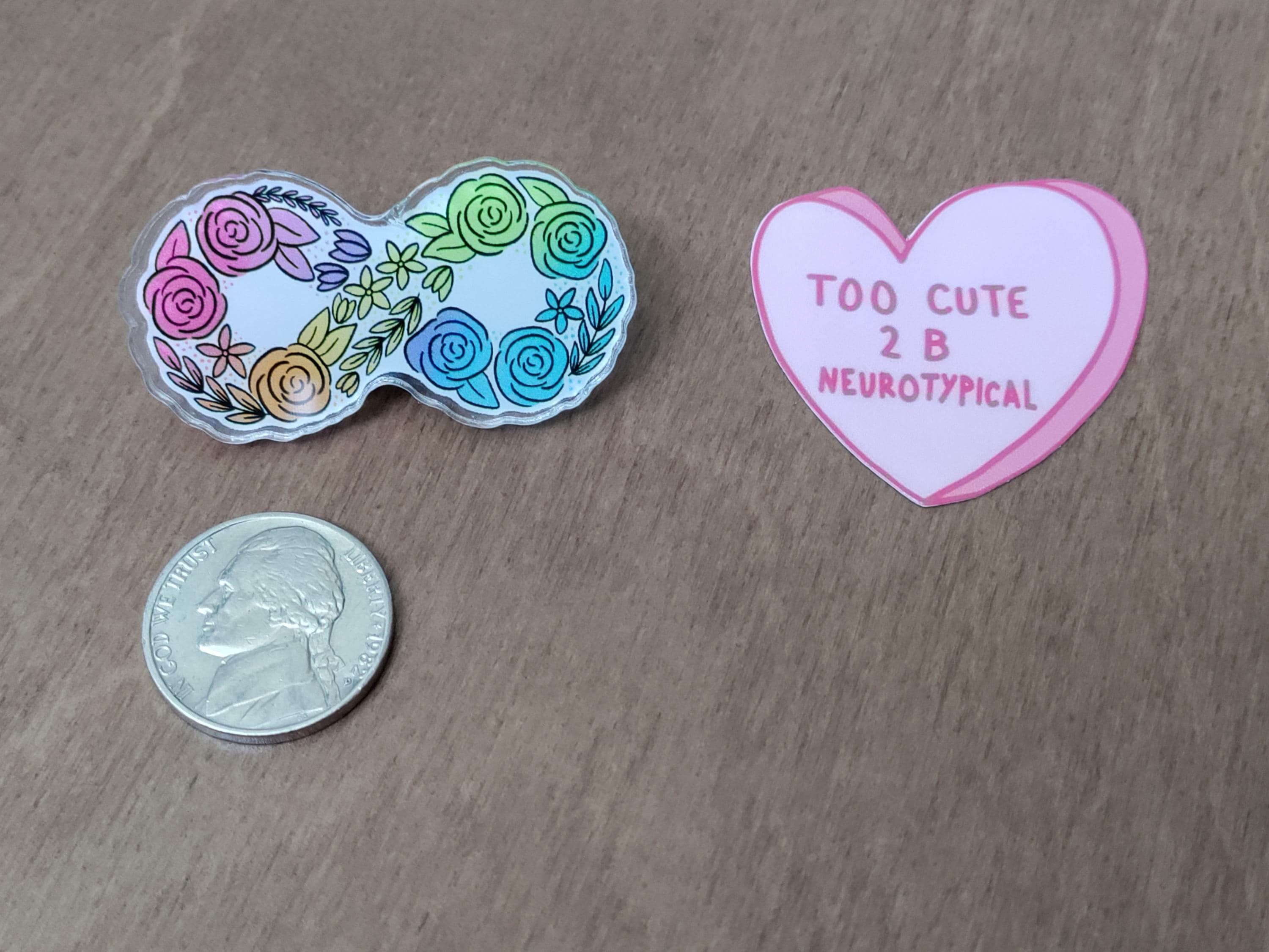 Show your support for neurodiversity with this small pin that you can attach to your shirt, jacket, bag, etc. It's made from acrylic and includes your choice of a rubber pin back or butterfly clutch.